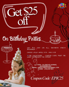 Get $25 OFF on all birthday party bookings at Epic Planet Fun! 🥳